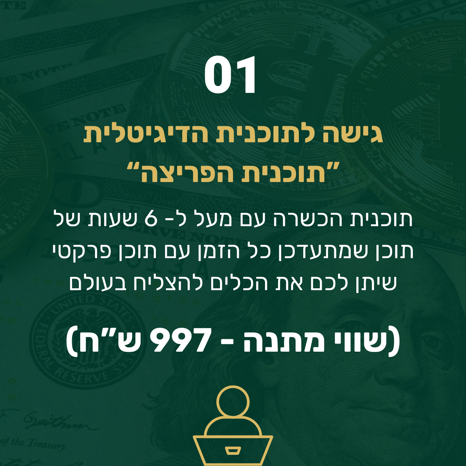 הזדמנות חד פעמית להצטרף לתוכנית עם הטבה מיוחדת ל- 24 שעות הקרובות בלבד
